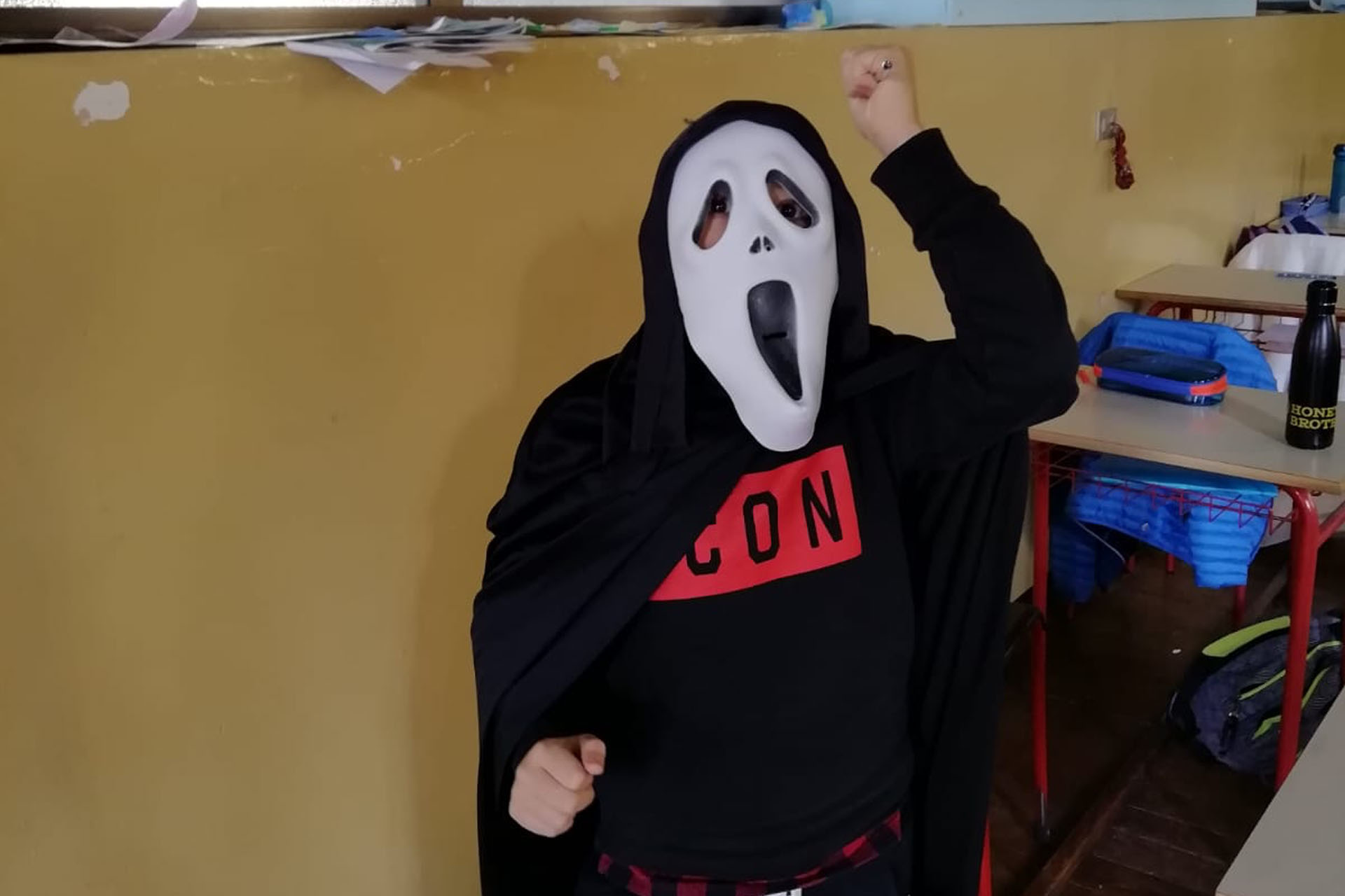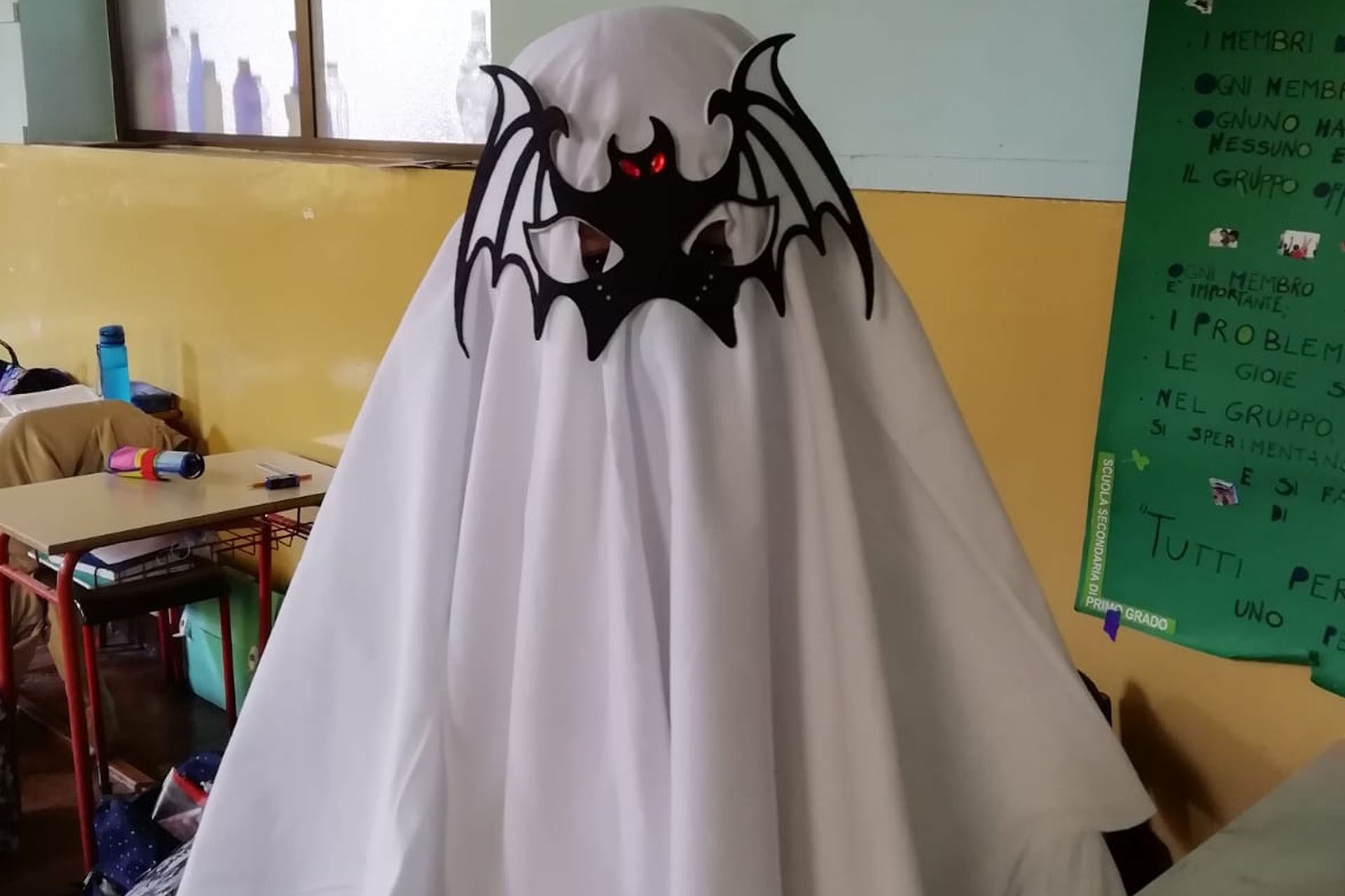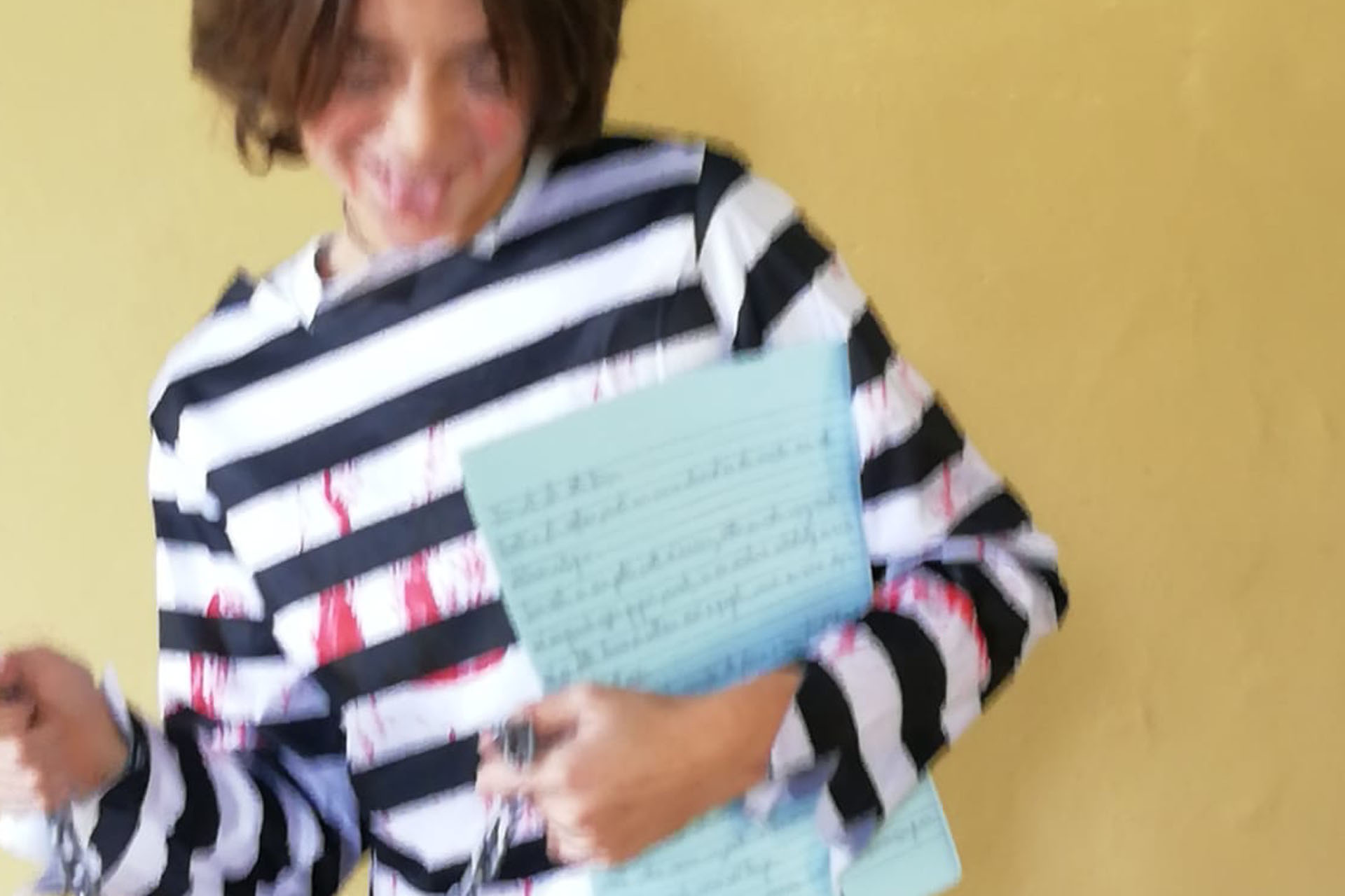 Alla fine, è arrivato il momento tanto atteso: per stimolare forme diverse di scrittura creativa, i ragazzi si sono travestiti mettendosi nei panni dei loro personaggi e al buio hanno raccontato la loro storia. Abbiamo sentito storie di zombie e streghe sull’orlo del precipizio, di bambini con spiriti persi, di fantasmi introversi e molto altro. Ci siamo spaventati e abbiamo riso, un bel modo per imparare a controllare le paure vivendole insieme. È stato un rito di passaggio e una prova di coraggio, aveva il fascino del proibito. Durante l’adolescenza si è sempre alla ricerca di emozioni forti, che allontanino la monotonia di tutti i giorni, perché ci fa sentire più vivi. Piacere e paura sono emozioni molto vicine e scatenano reazioni fisiologiche molto simili. Le palme delle mani sudano, le pupille si dilatano e l’adrenalina invade tutto il corpo. Perfetto dunque studiare il genere horror quando ciascuno di noi è alla ricerca del proprio io. In adolescenza non ci si vede se non con gli occhi degli altri, e questo può portare a pensare di essere mostri, dei diversi obbligandoci ad indossare maschere accettabili dalla società. È buona cosa allora capire i meccanismi della nostra mente e scoprirne i suoi funzionamenti per comprendere veramente chi siamo.
