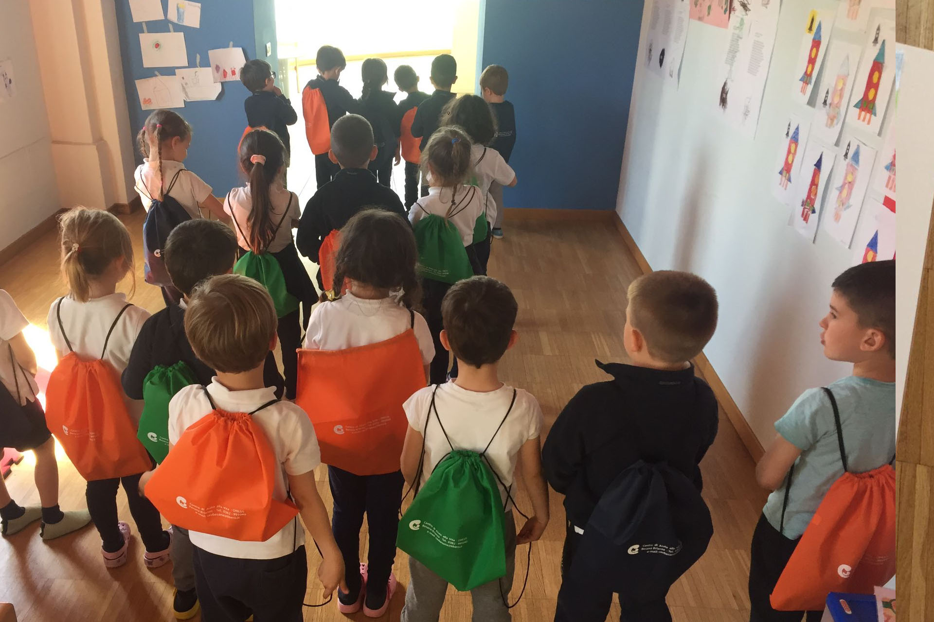 Dopo pochi giorni, i volontari del CAV sono venuti a scuola a ritirare i pacchi e hanno trovato una piacevole e commuovente sorpresa ad aspettarli. Tanti pacchi, corredati da bellissimi disegni preparati dai bambini di prima, seconda e terza primaria e che verranno utilizzati dallo stesso CAV come motivo del loro materiale di presentazione (brochure, volantini, biglietti da visita).