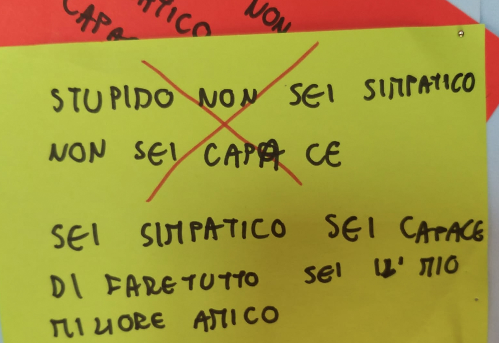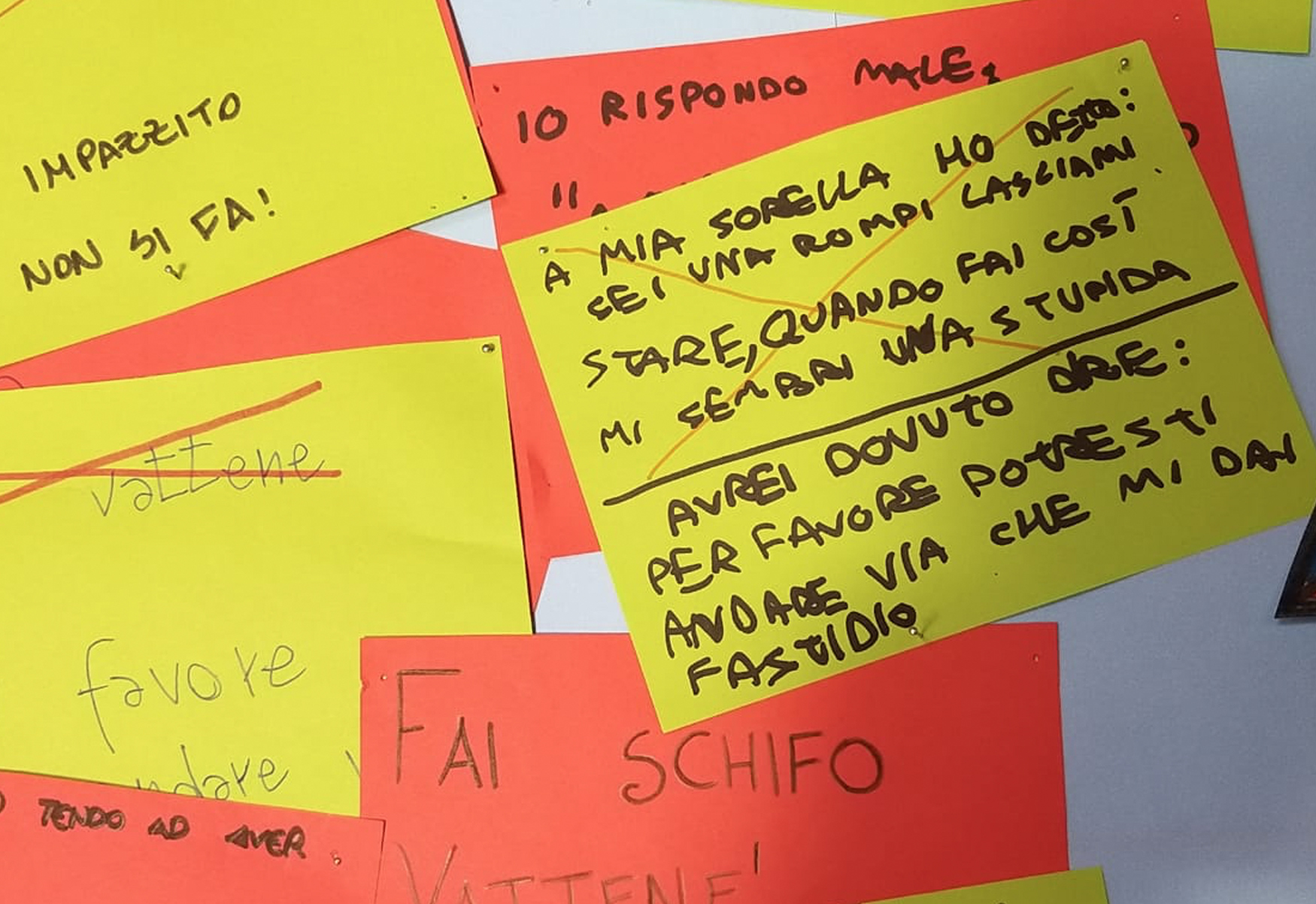 I ragazzi si sono poi cimentati in un esercizio: sono stati invitati a scrivere su un foglio le parole da loro dette in particolari situazioni, parole che, se avessero riflettuto meglio prima di parlare, non avrebbero usato, scegliendone invece altre più gentili, più delicate, che esprimendo lo stesso concetto non avrebbero ferito l’altra persona.