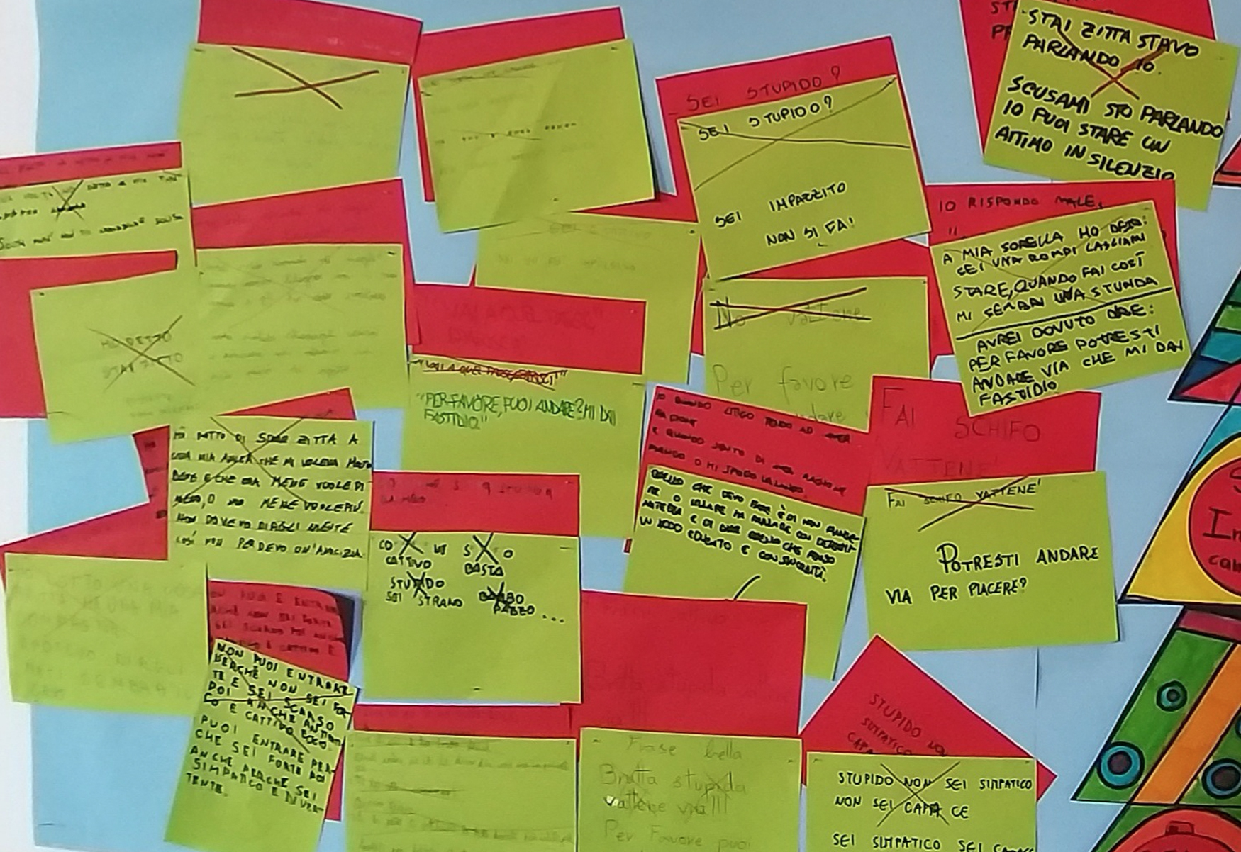 Questo esercizio è stato molto utile per i ragazzi, che hanno capito come le parole, se non usate correttamente, possano ferire, offendere, far soffrire. Si, perchè le parole vivono, respirano, lasciano un segno e se vengono usate in modo improprio possono avere conseguenze dannose.