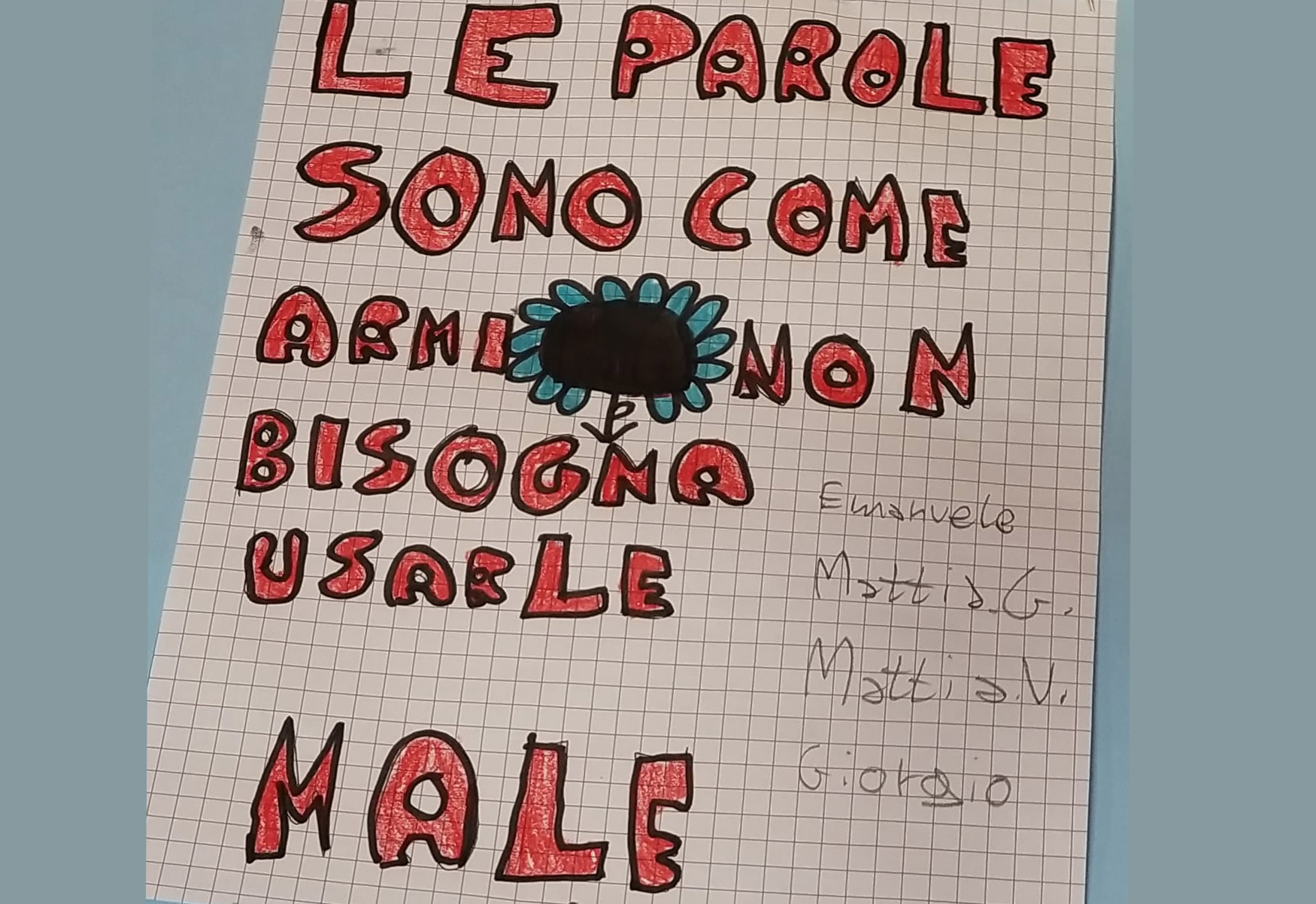 Partendo da una prima attività di avvio dell’anno scolastico, “ricominciare insieme”, e agganciandoci all’iniziativa proposta dall’associazione “Parole O Stili”, che ha l’obiettivo di sensibilizzare ed educare alla scelta di forme di comunicazioni non ostili in rete, gli alunni della classe 5A hanno attivato un percorso atto a riconoscere il valore delle parole e a farne un uso consapevole per una comunicazione corretta, nel mondo virtuale così come nel mondo reale.
