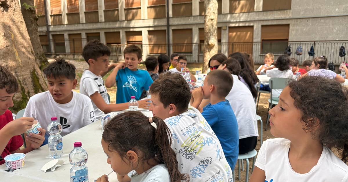 I pasti, equilibrati e adatti alle diverse fasce d’età, vengono consumati all’aperto o in refettorio, promuovendo momenti di convivialità e condivisione.