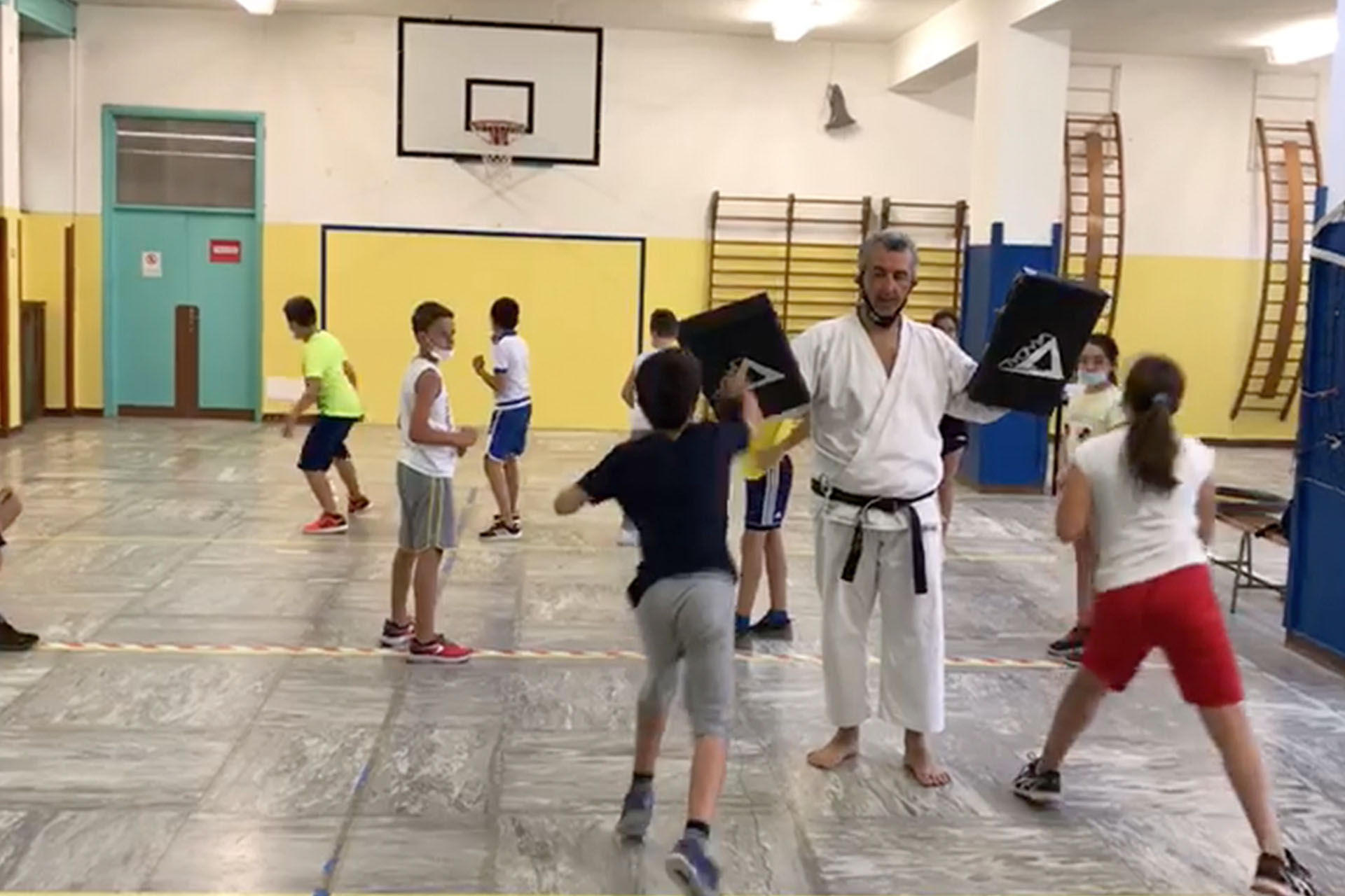 Basket, ma non solo…da uno sport dinamico, siamo passati ad uno sport che coinvolge il corpo, ma anche la mente: il Karatè. Eugenio, istruttore della Top Level Gym, ha avvicinato bambini e ragazzi ad una disciplina che ha effetti benefici su tutta la sfera psicologica e caratteriale, nonché fisica, dell’individuo. Attraverso il karatè, abbiamo capito che è possibile imparare a conoscere il nostro corpo, coordinare i movimenti, sviluppare il senso dell’attenzione e la prontezza di reazione. Grazie infinite Eugenio, per averci avvicinato a questa pratica e per averci fatto capire che non sempre è importante vincere, quanto piuttosto evolvere e migliorarsi!