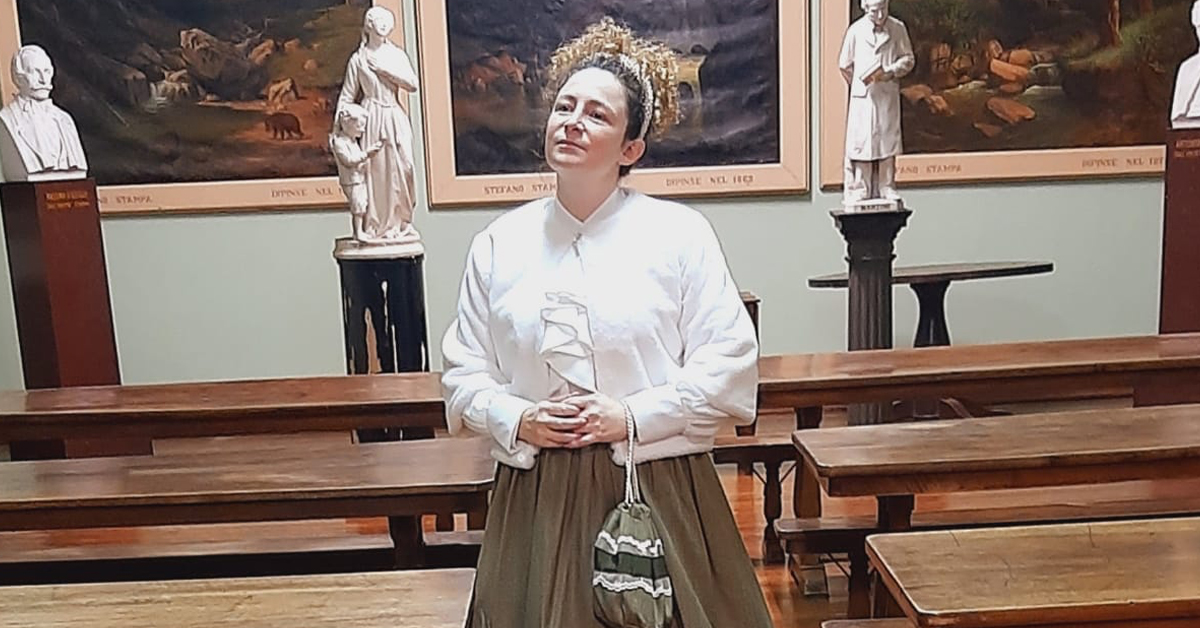 Dopo qualche minuto di attesa, l’immaginazione prende forma: si tratta della briosa Maria Teresa, che frequentava il Pio Istituto quando era ancora un collegio. “La musica e il teatro sono l’anima della scuola”, spiega dal palco la Professoressa Elena Redaelli, nei panni della frizzante alunna. “Vedete? Ci sono ancora i pianoforti che venivano suonati dalle nostre insegnanti”, aggiunge, prima di coinvolgere i presenti in un divertente gioco a ritmo di musica. Rotto il ghiaccio e spinti dal desiderio di scoprire i segreti della villa che ospita la scuola, grandi e piccini proseguono nel tour teatrale, animato dai docenti nel ruolo dei personaggi che hanno fatto la storia dell’Istituto.