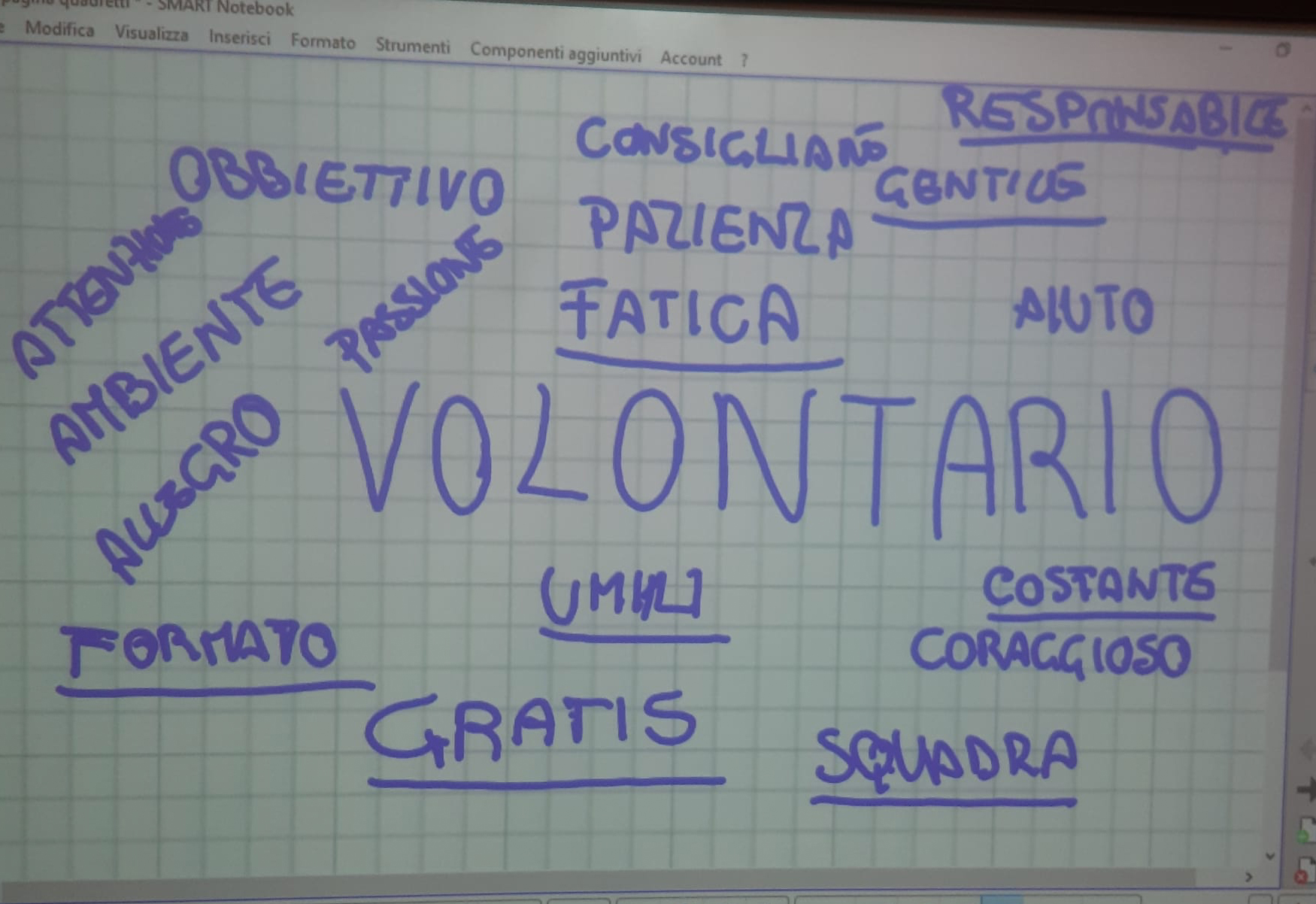Infine, i bambini sono stati coinvolti in uno stimolante lavoro di brainstorming sulla parola “volontario”.